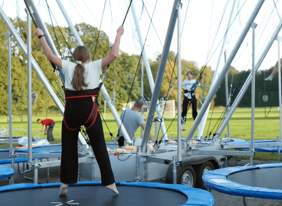 Uczestnicy są przypięci do elastycznych lin, które umożliwiają wykonywanie wysokich skoków – nawet kilka metrów nad ziemią. Trampolina ułatwia odbicie, a liny pozwalają na wykonywanie salt i innych efektownych ewolucji w powietrzu. Całość odbywa się pod czujnym okiem przeszkolonych instruktorów, którzy dbają o komfort i bezpieczeństwo uczestników.